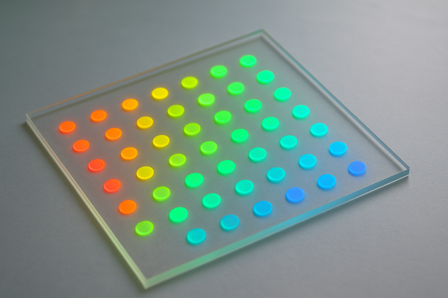 we deposit those dots into an array — each patch tuned to a different part of the spectrum.